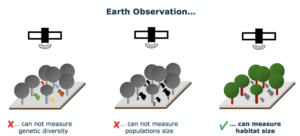 Species genetic diversity is a critical aspect of ecosystem health, but assessing it can be challenging due to the complexity of gathering and analyzing relevant data across large spatial scales. Traditional methods often require extensive fieldwork and labor-intensive sampling for DNA sequencing, which limits the frequency and scale of genetic diversity assessments. The Genes From Space monitoring tool uses Earth Observations (EO) to track habitat changes over time and infer population trends as indicators of genetic diversity.