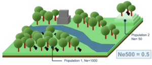 1. The Ne > 500 indicator, indicating the fraction of populations with an effective population size (Ne) above 500 units. Populations with Ne below 500 units are at risk of genetic erosion. Ne > 500 a headline indicator in the GBF.